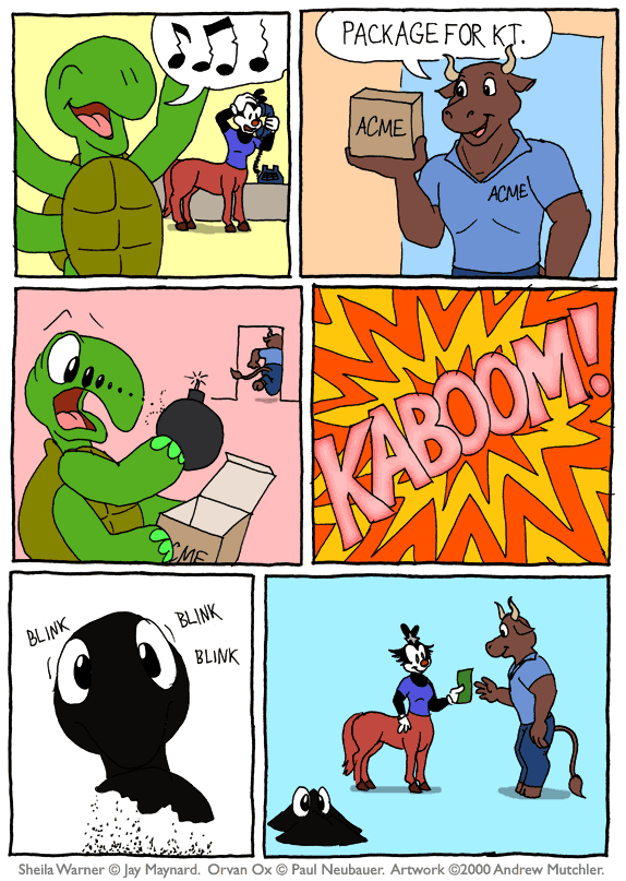 KT sings badly, prompting Sheila to call Orvan Ox. He makes deliveries for ACME, and delivers a package that KT gets a bang out of!