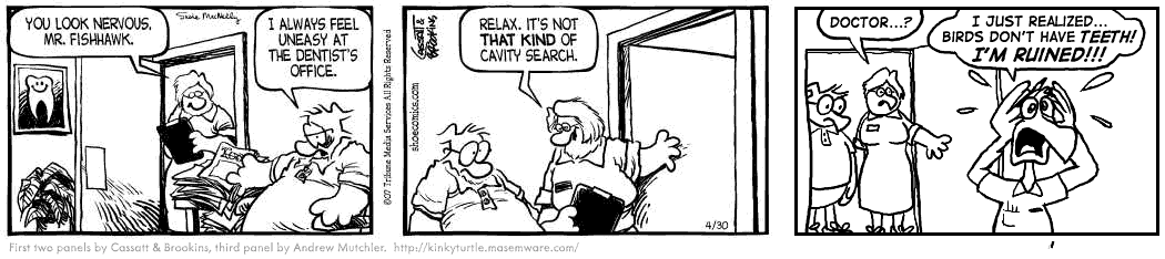 A Jeff MacNelly's Shoe comic strip by Cassatt & Brookins, made funnier with the addition of a third panel by me.