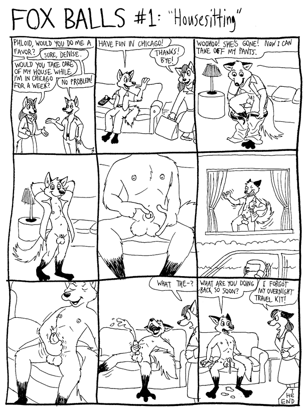 The first installment of a new comic series of sorts: a strip in which a fox's balls are prominently featured in every installment. Here, Phloid the fox housesits for a friend.