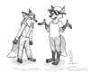 | northpaw-coon.gif DATE: 2007-05-29 — FILESIZE: 29768 bytes — IMAGE SIZE: 552x817 pixels Northpaw shapeshifts into a raccoon, embarrassing KT in front of Sefo. Also he's eating vindaloo. Drawn for Northpaw at Morphicon 2006. |