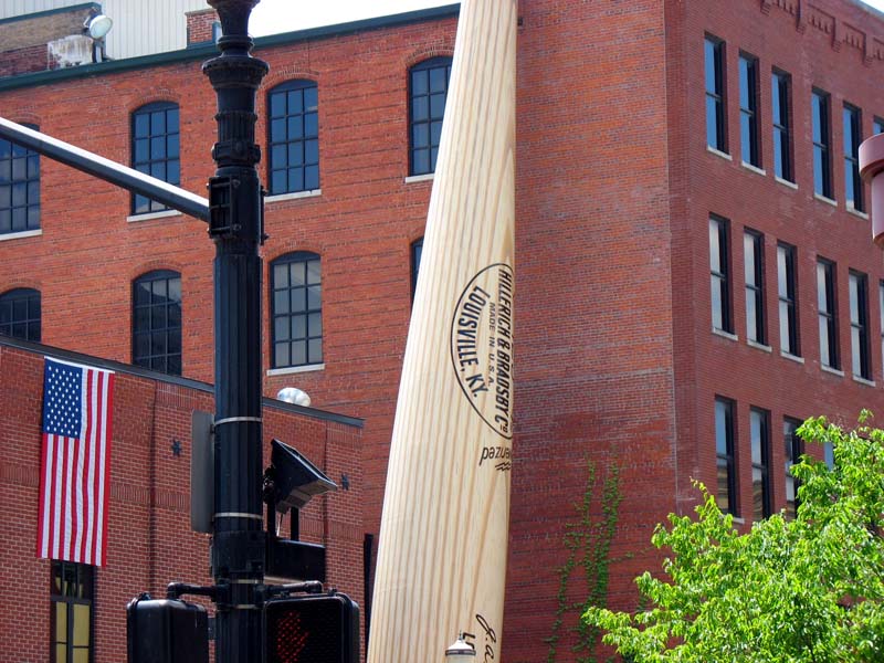 The gigantic baseball bat that leans against the Slugger Museum/Factory.