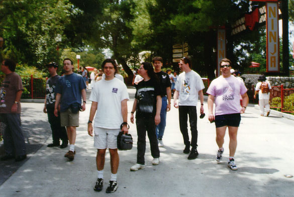 The gang decides where to go and heads away from the Ninja. L to R: Splut, Tet, Justin, Brendan, Dot, Trudy's Cousin, Seawolf, Jeff.