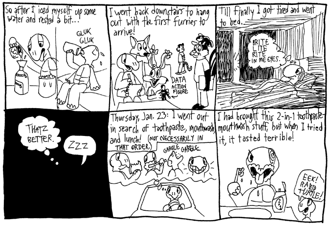Hung around in lobby. THURSDAY: Shopping run for toiletries.