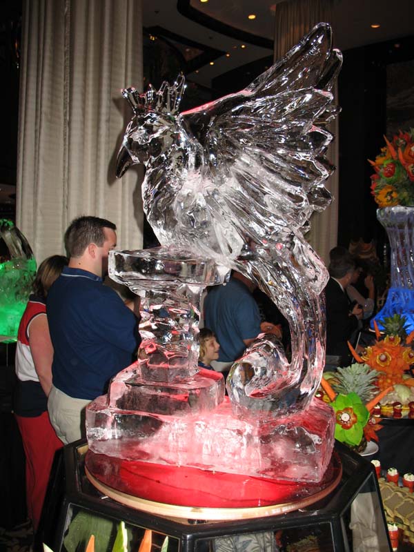 There's more than chocolate here, like these cocktail shrimp below the eagle ice sculpture (which, btw, was dripping water from its beak and looking like it had the sniffles).